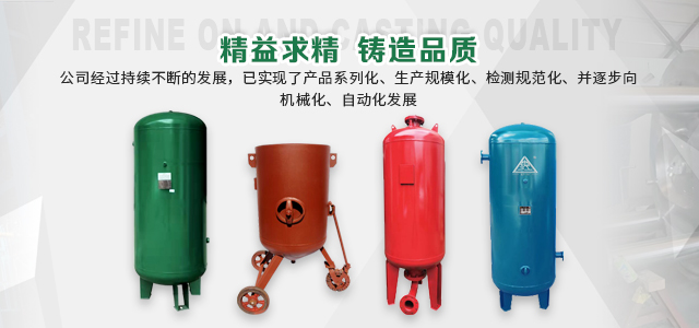本企業(yè)產品有眾多產品分類,儲氣罐、磨料桶、碳鋼儲氣罐、不銹鋼儲氣罐、中高壓儲氣罐、臥式儲氣罐、緩沖罐、隔膜罐、噴砂罐、分氣缸、以及其他的定做非標產品等,產品廣泛應用于化工、制藥、橡膠、石油、食品、機械等行業(yè)。
